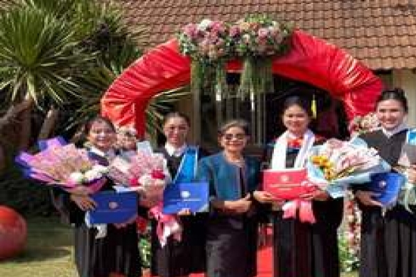 On March 13, the Duang Prateep Kindergarten organized a graduation ceremony for 60 departing students. Presiding over the ceremony was the Director of Klong Toey District, Mr. Bumrung Samneang-ngam, who present