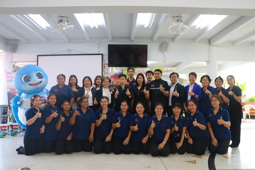 On February 11, the Duang Prateep Kindergarten joined a school safety project implemented by the office of the Bangkok Governor, entitled “Safe Schools, Fire-Free with Innovations from Food Waste”. A key innovation of this project is a research and development initiative aimed at adding value to food waste by repurposing discarded oyster shells into a high-quality flame retardant to enhance the safety of school buildings. The event was presided over by the Deputy Governor of Bangkok, Associate Professor Thawida Kamolwech, who spoke at length with the students, and also observed a fire evacuation drill at the kindergarten. The drill was conducted by the Head of the Klong Toey Fire and Rescue Station, Mr. Mongkol Kakaew, and his team, who also provided fire emergency preparedness training for the teaching staff, with support from the DPF’s own firefighting team. This event was made possible through the collaboration and support of the Director of the Klong Toey District Office and his team, as well as the executives and staff of the Bangkok Marriott Marquis Queen’s Park Hotel, Bayer Co., Ltd., and the National Nanotechnology Center.