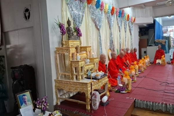 1月5日、サン・ハティラット名誉教授(医学博士)、プラティープ先生、秦辰也先生、並びにドゥアン・プラティープ財団の職員は、新年を迎えるにあたり、生前に財団に貢献された物故者への敬意を表して仏式の法事を執り行い、同時に今年1年の幸運を祈願ました。この法要は毎年恒例の行事として行われており、今年も9名の僧侶を招いて行われました。本法要は、新たな一年の業務に向かう現職員一同の祝福を願う意味も併せ持っています。