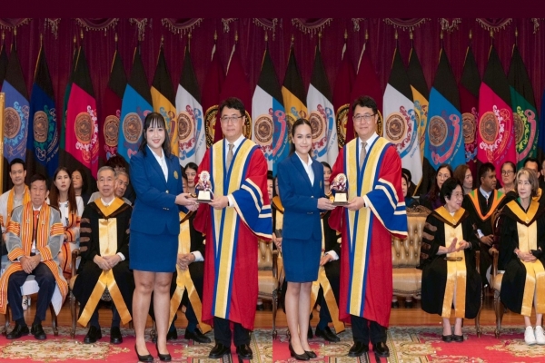 นางสาวปภาวรินทร์ และนางสาวปพิชญา เพิ่มลาภ ลูกสาวของพ่อด้วง การัญ เพิ่มลาภ เจ้าหน้าที่มูลนิธิดวงประทีป ได้รับ โล่เชิดชูเกียรติ จากมหาวิทยาลัยสยาม ประจำปี 2567
