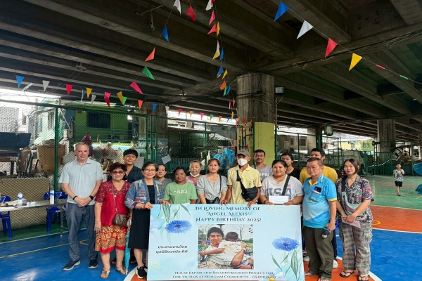 วันนี้ชุมชนใหม่ 12 หลังคาเรือน ที่ประสบอัคคีภัยเมื่อวันที่ 25 กรกฎาคมที่ผ่านมา กลับมามีรอยยิ้มอีกครั้ง เมื่อ ครอบครัว Echavarria และ Tendai Shumucho Ichigu wo Terasu Undo shohonbu มอบเงินช่วยเหลือเยียวยาในการซ่