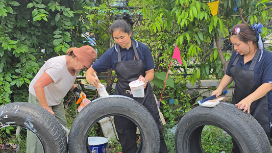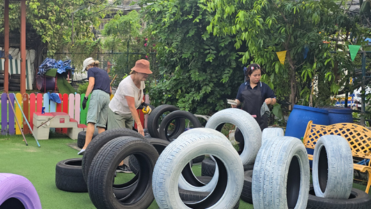 ทีมซ่อมสนามเด็กเล่นอนุบาลดวงประทีปจากออสเตรเลียกลับมาลุยงานกันต่อ ทั้ง Mrs. Claire & Mr. Tim Berger, Mrs. Jane & Mr. Tony Curran รวมถึงอาสาสมัครจากประเทศต่างๆ  และทีมอาสาสมัครดับเพลิง  ก็ยังคงช่วยกันแบบสุดพลัง ทุกคนช่วยกันซ่อมอุปกรณ์  ทาสีใหม่ให้สดใสกว่าเดิม ขอบคุณทุกแรงใจ ทุกแรงมือ ที่ทำให้สนามเด็กเล่นของน้อง ๆ กำลังจะกลับมาสวยสดใสอีกครั้ง