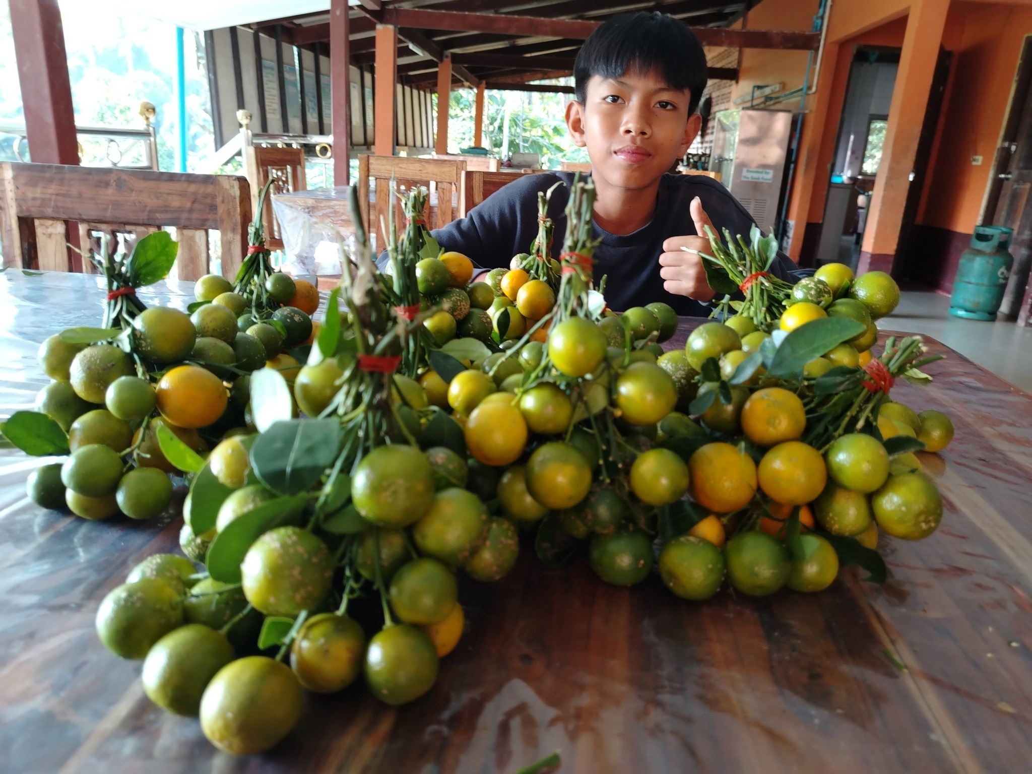 เด็ก ๆ ช่วยกันเก็บส้มจี๊ดจากสวนภายในโครงการ และในวันเดียวกันครูเอกยังพาน้อง ๆ ทำขนมไข่นกกระทา สร้างทั้งรอยยิ้มและทักษะชีวิตให้กับเด็ก ๆ