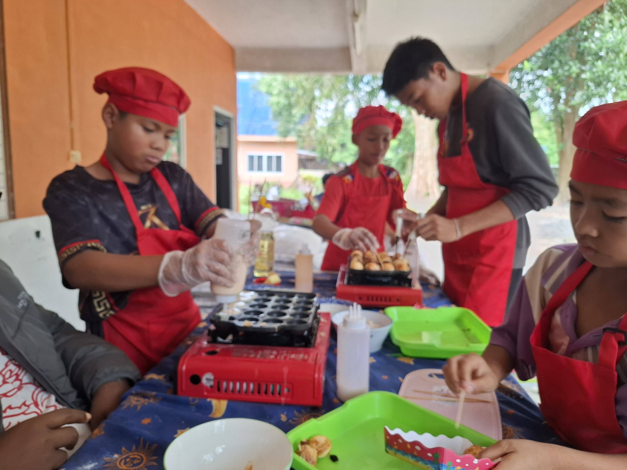 เมนูพิเศษของวันนี้คือทาโกะยากิ ที่ครูและเด็ก ๆ ช่วยกันทำให้น้อง ๆ ในโครงการ ได้ทั้งความอร่อยและความสนุก