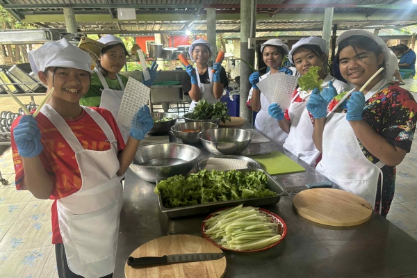 เด็กๆ จากโครงการเยาวชนหญิงสู่ชีวิตใหม่ จ.กาญจนบุรี ใช้เวลาปิดเทอมอย่างสร้างสรรค์ เรียนรู้การทำ “สลัดโรลผักรวม” เมนูเพื่อสุขภาพ จากครูบราวน์สุดใจดี พร้อมรอยยิ้มและความสุขเต็มเปี่ยม