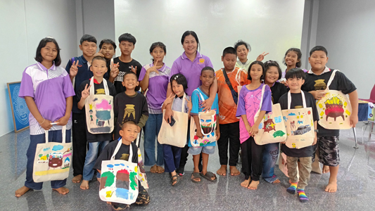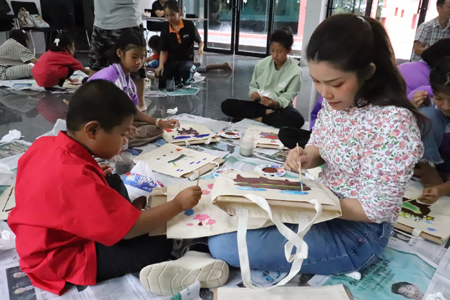 กิจกรรม "อบรมศิลปะ" ได้รับความอนุเคราะห์จาก พิพิธภัณฑ์สถานแห่งชาติ บ้านเก่า ท่านหัวหน้า คุณสำเนา จาดทองคำ วิทยากรพิเศษ อาจารย์แพรว พิมพ์โพธิ์ รองคณะบดี คณะมนุษย์ศาสตร์และสังคมศาสตร์ และ อาจารย์ศิวะรัฐ คำนุ นักวิชาการวัฒนธรรม สำนักศิลปะและวัฒนธรรม มหาวิทยาลัยราชภัฎกาญจนบุรี ให้ความรู้และการปฏิบัติ "วาดภาพ หม้อสามขา เติมแต่งภาพตามจินตนาการ และการใช้สีระบายในกระเป๋าผ้า เพื่อนำกลับมาใช้ได้ด้วย" เด็กๆมีความสุข, ฝึกสมาธิ และ การใช้จินตนาการ ภาคบ่าย อบรมศิลปะ เรื่อง การสกรีนภาพลงบนเสื้อ (หม้อสามขา พิพิธภัณฑ์สถานแห่งชาติบ้านเก่า)