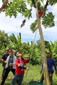 วันที่ 10 สิงหาคม คณะฯ ได้ร่วมแรงกัน บำรุงสวนปาล์มและเก็บผลมะละกอ ซึ่งเป็นแหล่งรายได้ของโครงการฯ จากนั้นได้เรียนรู้กิจกรรมเชิงสร้างสรรค์ ได้แก่ การทำพวงกุญแจจากเมล็ดปาล์ม และการร้อยพวงมาลัย ที่ต้องใช้ทั้งสมาธิ ความอดทน และความตั้งใจ ช่วงบ่ายร่วมกัน ประดิษฐ์กระทง และในช่วงค่ำได้จัดกิจกรรม จำลองประเพณีลอยกระทง ที่สร้างความประทับใจและความทรงจำที่ดีแก่ทุกคน