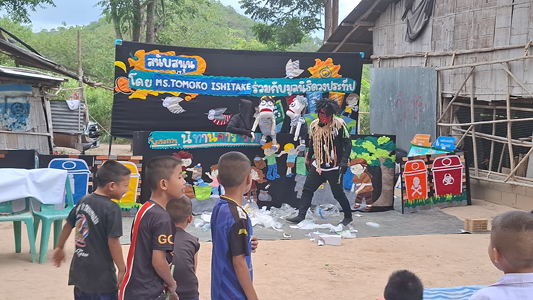 แม้ หมู่บ้านดงสะเดา จะยังไม่มีไฟฟ้า แต่หัวใจของชุมชนกลับอบอุ่นและเต็มไปด้วยรอยยิ้มที่เปล่งประกายยิ่งกว่าดวงไฟใด ๆเช้าวันนี้ ทีมงาน “นิทานคาราวาน” จากมูลนิธิดวงประทีป เดินทางฝ่าฝนขึ้นสู่หมู่บ้าน พร้อมขบวน ละครหุ่น เกม และกิจกรรมสื่อสร้างสรรค์ เพื่อส่งต่อ เสียงหัวเราะ และความรู้เรื่อง การคัดแยกขยะ ให้กับเด็ก ๆ และผู้ใหญ่เด็ก ๆ ตื่นตาตื่นใจกับละครหุ่นที่ไม่เคยเห็นมาก่อน และเรียนรู้ว่าขยะประเภทต่าง ๆ เช่น เศษอาหาร ขวดน้ำ กระดาษ และพลาสติก สามารถแยกและนำกลับมาใช้ประโยชน์ได้นอกจากนี้ ทีมงานยังมอบ ถุงผ้า ให้เด็ก ๆ และผู้ใหญ่ในหมู่บ้าน เพื่อทดแทนการใช้ถุงพลาสติก แม้สิ่งเล็ก ๆ นี้จะดูธรรมดาในเมืองใหญ่ แต่มีคุณค่ามหาศาลในพื้นที่ที่ยังไม่มีแสงสว่างยามค่ำคืนเจ้าหน้าที่โครงการ เยาวชนหญิงสู่ชีวิตใหม่ จ.กาญจนบุรี ร่วมกิจกรรมครั้งนี้ด้วยมูลนิธิขอขอบคุณ Ms. Tomoko Ishitake ผู้สนับสนุนที่อยู่เบื้องหลังทุกการเดินทาง เพราะแสงแห่งความรู้และความหวังนั้น สามารถส่องสว่างในหัวใจเด็ก ๆ ได้ไกลกว่าแสงไฟใด ๆ