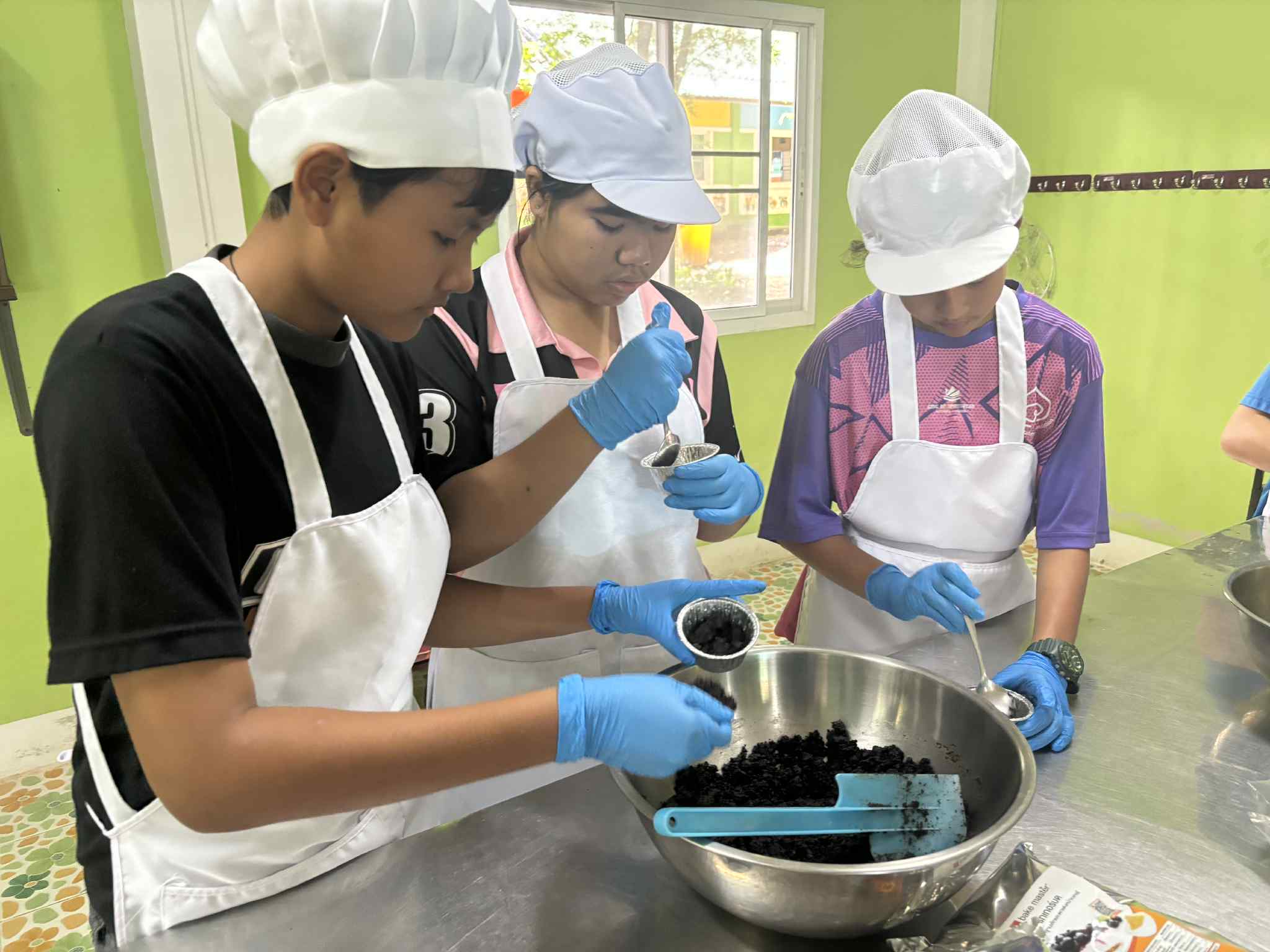 นอกจากการเรียนรู้ในห้องครัวแล้ว เด็กๆ ยังได้นำขนมที่ทำเองไปวางจำหน่ายที่ตลาดนัดในช่วงเย็น ฝึกทั้ง ความกล้าในการพูด การขาย และการรู้คุณค่าของแรงงานตนเอง