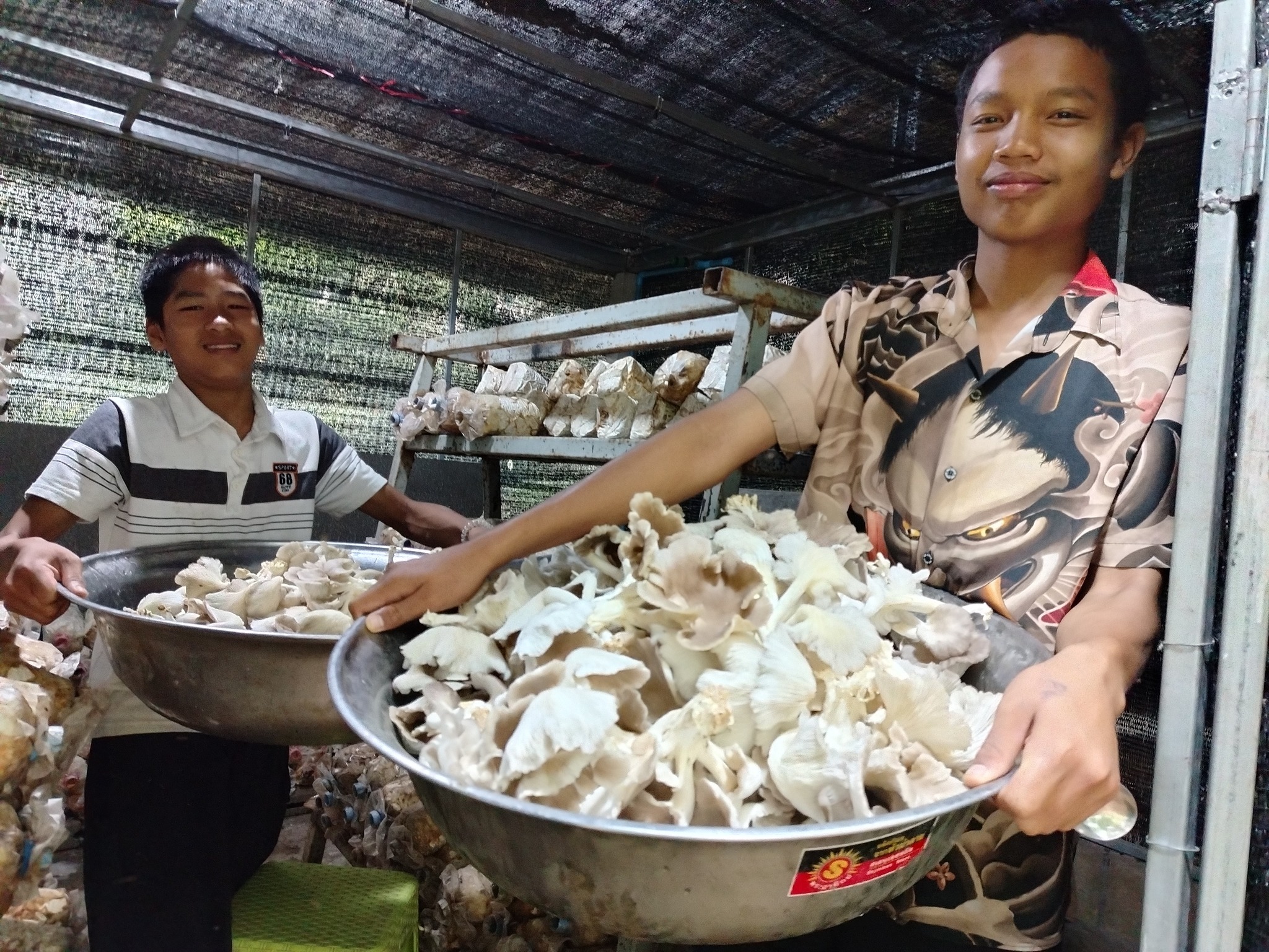 ช่วงเช้าเด็ก ๆ ช่วยกันเก็บเห็ดนางฟ้าที่เพาะเลี้ยงไว้ภายในโครงการ เป็นกิจกรรมที่ช่วยให้เด็กได้เรียนรู้การทำเกษตร การพึ่งพาตนเอง และการทำงานเป็นทีม